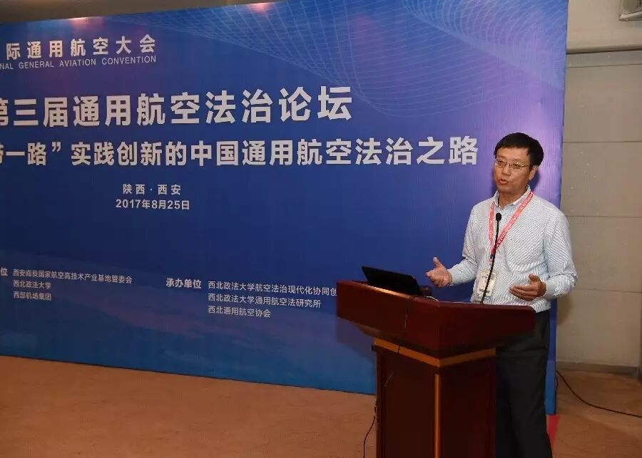 2017年8月25日,由西安阎良航空高技术产业基地、西北政法大学航空法治现代化协同创新中心、西北政法大学通用航空法研究所、西部机场集团以及西北通用航空协会联合主办的第三届通用航空法治论坛在西安绿地笔克会展中心举行,论坛主题为“面向‘一带一路’实践创新的中国通用航空法治之路”。